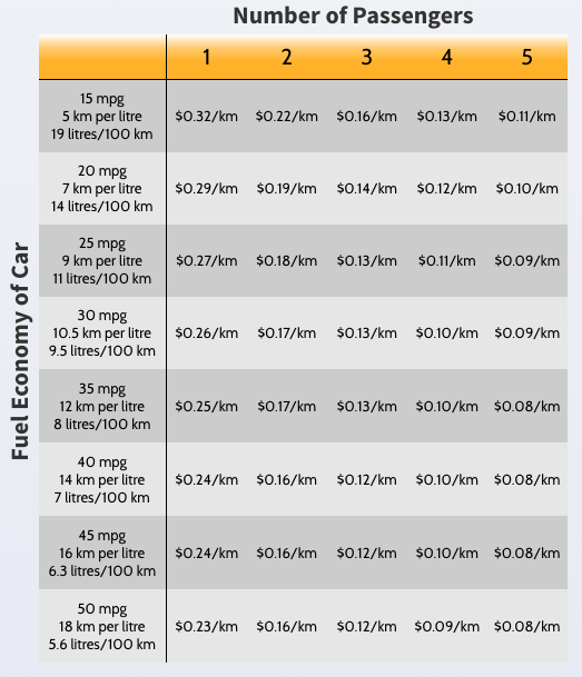 Transportation is expensive and people sharing rides should expect to share the expense. However opinions vary as to what's fair so discuss contributions before departing. Use the table below as a starting point for negotiations. Keep in mind: